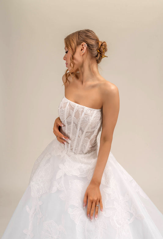 LOOK 14 Classic strapless sweetheart neckline embroidery bridal gown (Model WG2024-14)