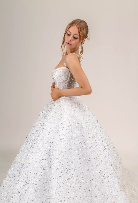 LOOK 8 Classic square neckline glittering sequins bridal gown (Model WG2024-08)